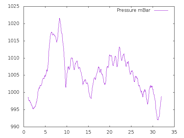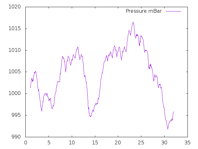 The Horizontal scale is the day numbers, vertical scale is the air pressure in milli-bar.