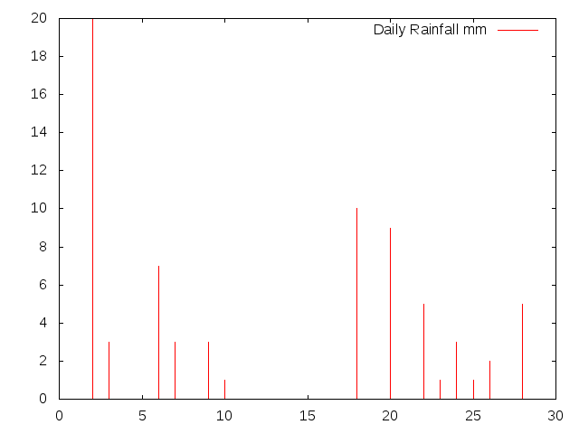 On all these plots, the Y axis is rainfall in millimeters and the X axis is the day of the month. There are placeholders for the later months, data will become available as time goes on.
