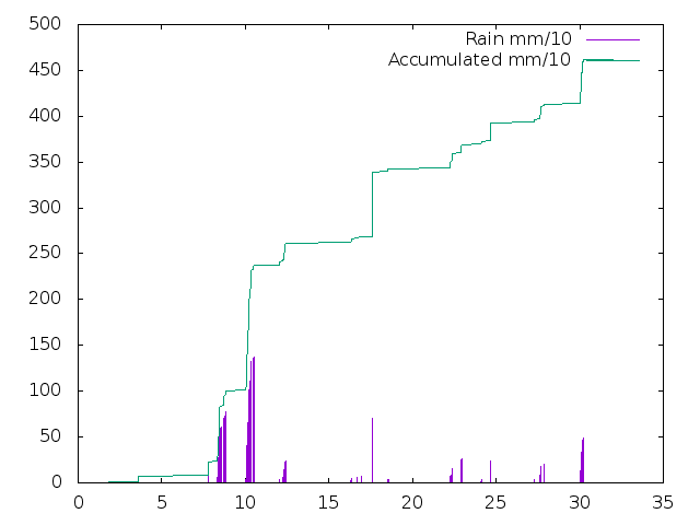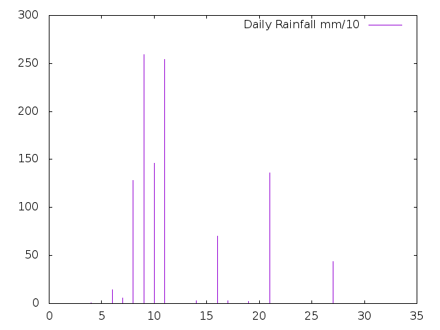 On all these plots, the Y axis is rainfall in millimeters and the X axis is the day of the month. There are placeholders for the later months, data will become available as time goes on.