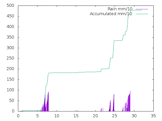 On all these plots, the Y axis is rainfall in millimeters and the X axis is the day of the month. There are placeholders for the later months, data will become available as time goes on.