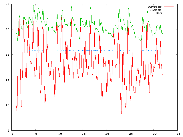 On all these plots, the Y axis is temperature in degrees C and the X axis is the day of the month. There are placeholders for the later months, data will become available as time goes on.