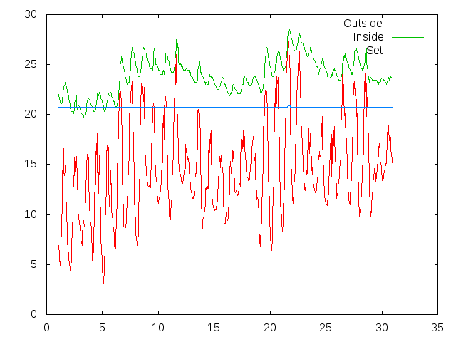On all these plots, the Y axis is temperature in degrees C and the X axis is the day of the month. There are placeholders for the later months, data will become available as time goes on.