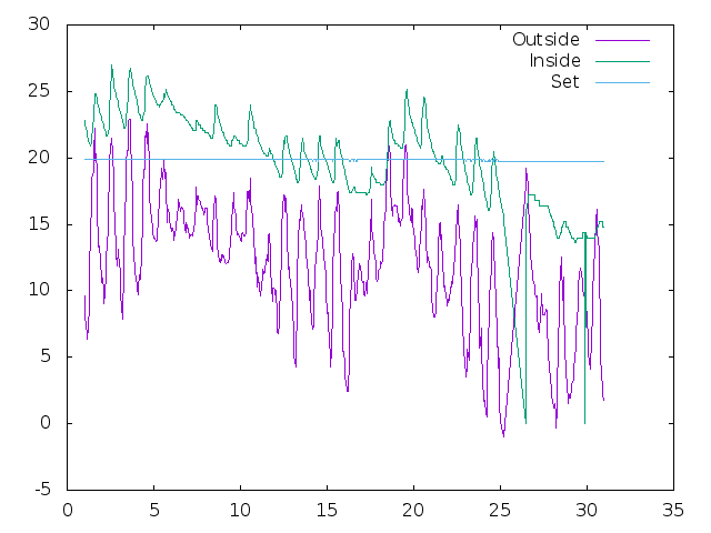 On all these plots, the Y axis is temperature in degrees C and the X axis is the day of the month. There are placeholders for the later months, data will become available as time goes on.