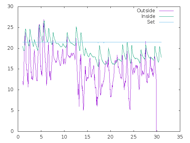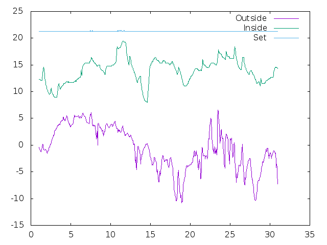 On all these plots, the Y axis is temperature in degrees C and the X axis is the day of the month. There are placeholders for the later months, data will become available as time goes on.
