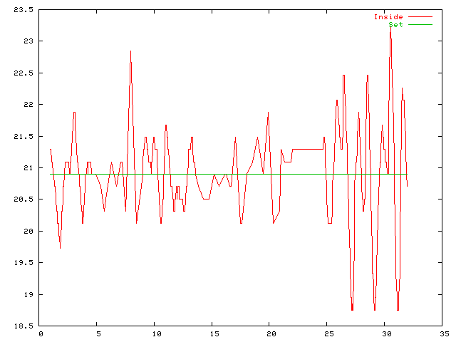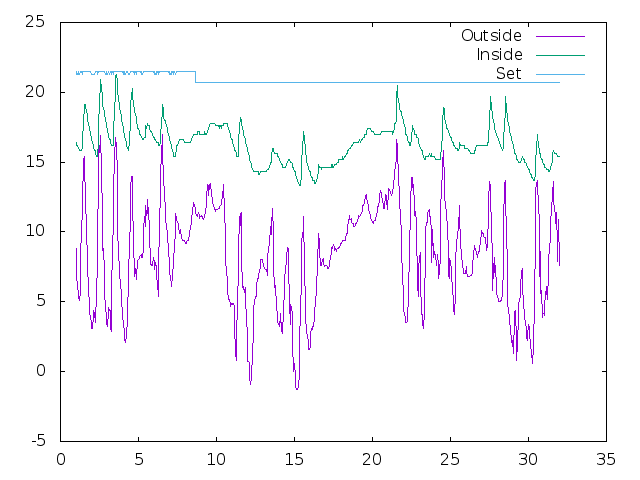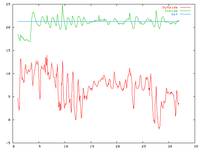 The Horizontal scale is the day numbers, vertical scale is the temperatures in degrees Celsius.